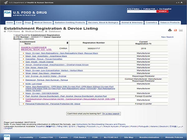 美國(guó)FDA證書